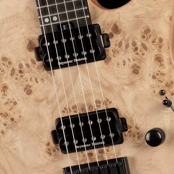 Débordant de polyvalence grâce au mini interrupteur à bascule bidirectionnel pour série et parallèle, cette guitare dispose d'une configuration de micro HH composée d'un micro chevalet Seymour Duncan® Full Shred SH-10B et d'un Seymour Duncan Alnico II Pro™ en micro manche.