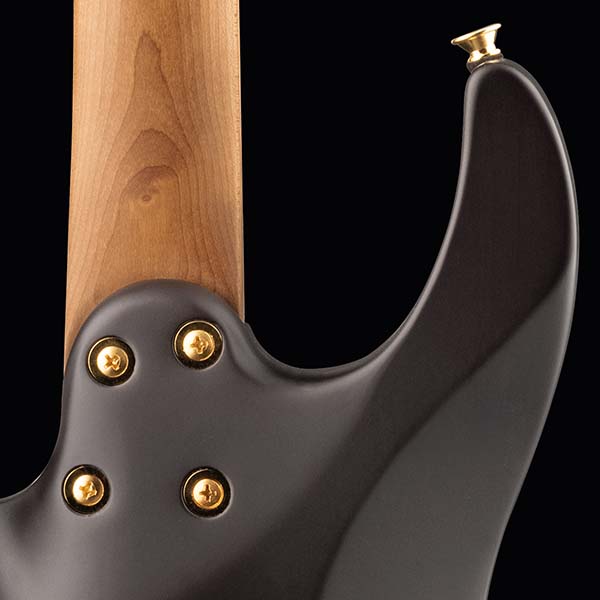 Le manche «speed» en érable caramélisé vissé est doté d'un renfort en graphite, d'une finition arrière en uréthane satiné soyeux et lisse, d'un trussroad et de points latéraux Luminlay®. Sa touche est en érable "caramélisé" avec un rayon composé de 12 à 16 pouces présente des bords roulés confortables, 24 frettes jumbo, des incrustations de points en nacre de 4 mm et un écrou Graph Tech® TUSQ® XL.