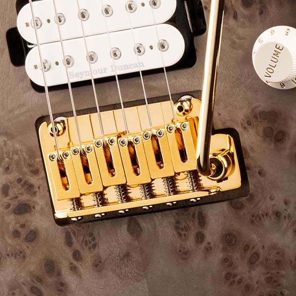 Cet instrument modernisé est également équipé d'un système de pont de trémolo à double verrouillage Floyd Rose® série 1000 encastré pour une stabilité d'accord supérieure et une capacité radicale d'augmentation de la hauteur.